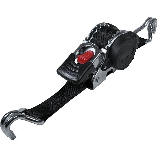 Lastesurring med automatisk opprulling for sikring av lettere last. Funksjonen ligner på et vanlig bilbelte. Utstyrt med en fjærbelastet spole som trekker inn båndet med et enkelt knappetrykk. UV-bestandig og smussavvisende. Stropp med høy bruddstyrke.