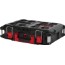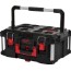 Verktøykasse med innvendige oppbevaringsskuffer. Metallforsterkede hjørner. Metallforsterket låsepunkt. Laget av slagfast polymer. Monteringssted for One-Key Tick. Støv- og vanntett IP65. Inkludert i Milwaukees Packout modulære lagringssystem.