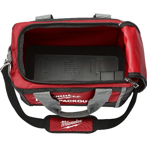 Verktøyveske av ballistisk nylonkonstruksjon. Slagfast polymerbase beskytter innholdet mot vann og smuss. Polstret skulderstropp, topp- og sidehåndtak. Polstrede håndtak og skulderstropper. Inngår i Milwaukees Packout modulære lagringssystem.