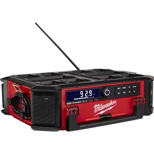 Arbeidsplassradio med 360° surround høyttalere og 40 W forsterkere. System med 10 høyttalere, som består av fire fullregister- og fire diskanthøyttalere, en subwoofer og en basshøyttaler som leverer et klart mellomregister og en klar diskant, kraftig bass og balansert surroundlyd over store arealer både innen- og utendørs. Digital Bluetooth-mottakere (4.2), streamer musikk opp til 30 m fra din mobile enhet. DAB+ og AM/FM tuner med en digital prosessor som leverer god dekning, klart signal og informasjon som om sang, artist og tidspunkt. Frekvensområde 522-1620 kHz (AM), 87,5-108 MHz (FM), 174-240 MHz (DAB+). Drives av Milwaukee M18 batterier eller støpsel. Kan klare en hel arbeidsdag med ett M18, 5,0 Ah-batteri. Innebygget ladefunksjon for rask og praktisk lading av alle M18 batterier eller elektriske enheter via USB port. IP57 klassifisert, gjør radioen støv- og vannavvisende. Utstyrt med praktisk flaskeåpner. Kompatibel med alle Milwaukees Packout- oppbevaringssystem.