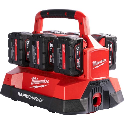 Batterilader for alle Milwaukee Li-Ion batterier med M18 teknologi. Lader 6 M18 5,0 Ah batterier på 3 timer. Plass til 6 M18 batterier. Lader 2 batterier samtidig med høy hastighet. Redlink-intelligens som optimerer ladehastigheter basert på batteritype og temperatur for å minimere ladetiden og maksimere batterilevetiden. Også utstyrt med 1 stk 2,4 A USB-A ladeport, for lading av mobile enheter. Oppbevaringsrom for mindre elektroniske enheter. Med bærehåndtak og klargjort for montering på veggen. Kompatibel med hele Milwaukee Packout lagringssystem.