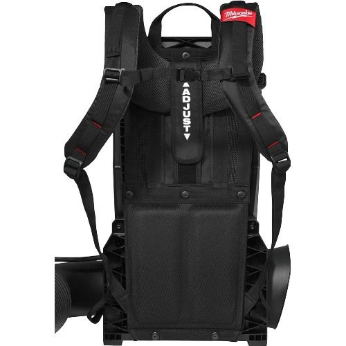Ryggblåser som drives med 2 stk 18 V Li-Ion batterier, med en ergonomisk ryggplate og justerbart avlastningsbelte. Optimal balanse og ergonomi med 3 faste innstillinger, trinnløs hastighetsregulering, verktøyløs justering av håndtaket og forlengbart munnstykke. Konstant blåsekraft på 20,5 N gjennom hele utladningssyklusen. Opptil 18,5 m³/min ved 250 km/t. Når full hastighet på under ett sekund. Plass til fire batterier muliggjør lang driftstid.