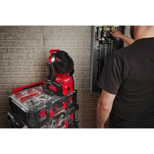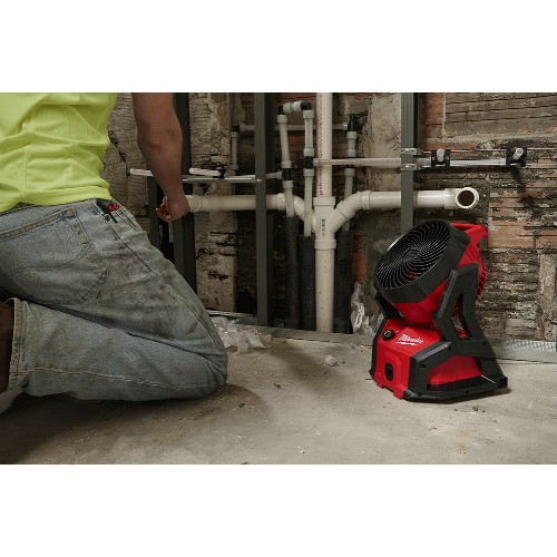 Batteridrevet vifte 18 V Li-Ion som også fungerer med strømtilkobling. Variabel hastighetsregulering og 180 mm bladdiameter for optimalt luftstrøm opptil 1444 m³/h. Justerbart hode i 300° for bruk i forskjellige høyder og posisjoner. Kompakt design med integrert håndtak. Kompatibel med Milwaukee Packout-systemet. Mulighet for veggmontering. 3 timers driftstid på høy hastighet med et M18 Redlithium 5,0 Ah-batteri. Fleksibelt batterisystem, passer alle Milwaukee M18-batterier.