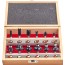 Fresesett i 12 delers ruterbitssett, 8 mm skaft. Leveres i treeske.